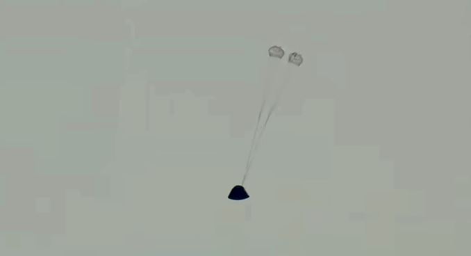 • Ao todo, jornada deve durar cerca de 10 dias; retorno à Terra está previsto para as 21h07 desta sexta-feira (10)Paraquedas de frenagem são liberados e os três paraquedas principais são acionados, reduzindo a velocidade da Orion para menos de 219 km/h